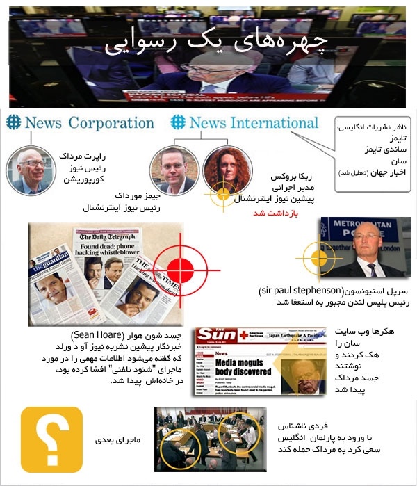 این شنود مکالمات در نشریه نیوز او د ولد وابسته به شرکت رابرت مرداک ظرف شش سال صورت گرفته است.در پی افشای این رسوایی نشریه نیوز او د ولد در ژوئیه 2011 میلادی تعطیل شد.