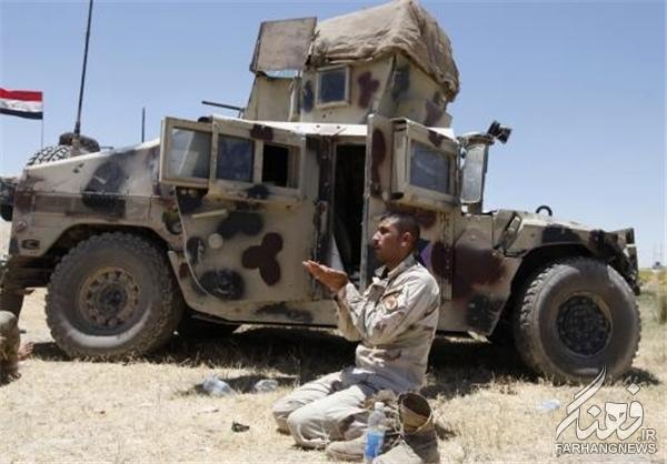 شهدای ایران: مجاهد عراقی در بحبوحه درگیری با تروریست های داعش، مشغول اقامه نماز ظهر است.