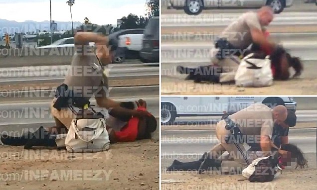 تصاویر ویدیویی آماتور (غیرحرفهای) که یکی از رانندگان در بزرگراه شهر لسآنجلس در ایالت کالیفرنیا تهیه کرده و متعاقباً شبکه تلویزیونی آسوشیتد پرس اصالت و درستی این تصاویر را تأیید و آن را پخش کرده است، نشان میدهد که یکی از افسران پلیس لسآنجلس، زنی بیخانمان را در کنار بزرگراه روی زمین انداخته و او را به شدت کتک میزند و بارها با مشت به سر و صورت او میکوبد.