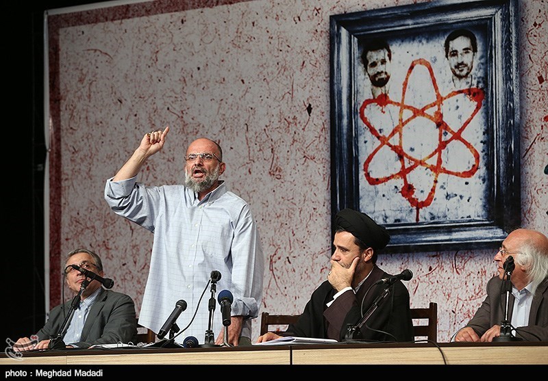 وی با بیان اینکه بردن خانواده شهدای هسته ای به دیدار جک استراو، مسخره ترین اقدام است، اظهار کرد: متاسفم که همه مفاهیم به لجن کشیده شده است. من وقتی دیدم همه کاندیداهای انتخابات حتی تند ترینشان رفتند و با روحانی عکس یادگاری گرفتند و پشت او نماز خواندند خیلی ناراحت شدم. دیدم که پشت سرشان نوشته است «ما همه با هم هستیم» و فقط زیرش ننوشتند که «نترسید، نترسید»! چطور خواصی که این کار را کردند فردا در بزنگاه می خواهند مردم را هدایت کنند؟ (تشویق حضار)