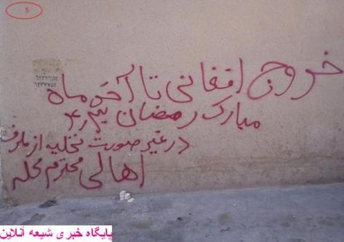 به گفته وي، اهالي اين دو منطقه بدون پيگيري قانوني، به صورت خودسرانه پلاکاردهايي بر روي ديوار خانه هايي که در مهاجران بي گناه افغاني سکونت کرده اند، که بر روي اين پلاکاردها چنين عبارتي نوشته شده است: خروج افغاني تا آخر ماه رمضان 30/4 در غير صورت تخليه از طرف اهالي محترم محله.