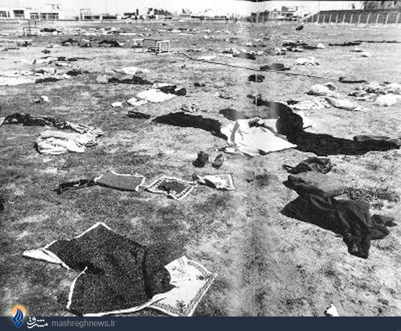 دود و آتش که فرو نشست ورزشگاه آزادی، کربلایی شده بود. پیکر پارهپاره و غرق به خون زنان و مردان و حتی خردسالانی که آمده بودند تا مشق نماز و مبارزه بیاموزند، بر روی چمنها که حالا دیگر رنگش به سرخی میزد، در خلسهای ابدی خوابیده بودند. چادرهای نماز، سجادههای خونین، شیشه شیر خردسالان و کفشهای نمازگزاران زمین را فرش کرده بودند.