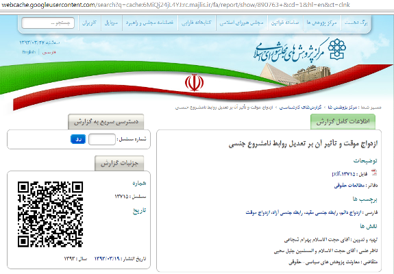 سایت مرکز پژوهش های مجلس شورای اسلامی ۱۹ خرداد گزارشی با عنوان «ازدواج موقت و تاثیر آن بر تعدیل روابط نامشروع جنسی» منتشر کرد. گزارشی که آمار و ارقام عجیب و غریب موجود در آن با واکنش های فراوانی روبرو شد. بسیاری از کارشناسان اجتماعی، صحت اطلاعات و ارقام این گزارش را به چالش کشیدند. از سوی دیگر سایت های فارسیزبان خارج از کشور و البته چند روزنامه و سایت داخلی نیز ضمن پر رنگ کردن برخی آمارهای این گزارش و استناد به نقل آن در مرکزی وابسته به مجلس شورای اسلامی،تحلیلهای عجیب و غریبی از وضعیت اجتماعی ایران ارائه دادند.