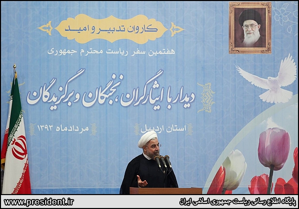 رییس دولت تدبیر و امید در جمع برگزیدگان، ایثارگران و نخبگان استان اردبیل با بیان اینکه «از همه یک خواهش دارم»، گفت: همه ملت ایران توجه داشته باشند که اولویتها یادمان نرود، ضمن اینکه افکار عمومی جامعه ایران در این اولویتها در حال نزدیک شدن به یکدیگر است. همه میگویند مذاکره جدی انجام دهید و معضل تحریم را حل کنید.