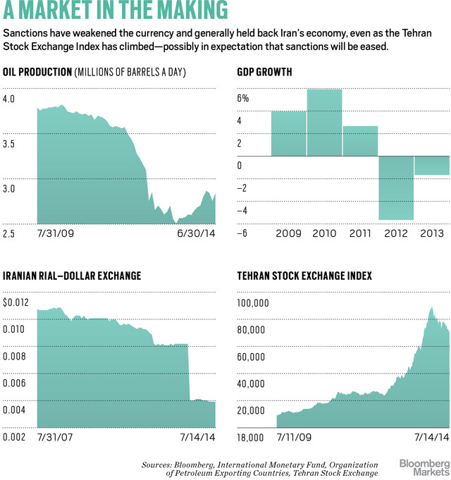 نشریه بلومبرگ همچنین با اشاره به تحولات اخیر در منطقه خاورمیانه و حضور گروه‌های تروریستی در کشور عراق و سوریه می‌نویسد: «به خطر افتادن تولید نفت در عراق و همچنین بی‌ثباتی در این کشور ‌به‌عنوان یک تولید کننده بزرگ نفتی و از سوی دیگر حضور پرنگ ایران ‌به‌عنوان چهارمین تولیدکننده نفت در جهان دولت آمریکا را برآن داشته تا با ایران تعامل بیشتری داشته باشد. بلومبرگ بازار گسترده فولاد در ایران و همچنین بازار ۱۳۵ میلیارد دلاری بورس اوراق بهادار تهران را بسیار بهتر از برخی شرکای فعلی اروپا توصیف کرده است. »