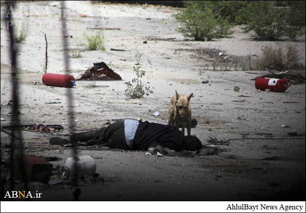 به گزارش شهدای ایران، گروه تروریستی جبهة النصرة برای ایجاد رعب و وحشت در قلبهای دشمنان(!) اجساد علویان و نیروهای ارتش سوریه را طعمه سگها میکند.