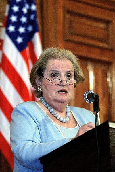 آلبرایت در «شورای ملی ایرانیان-امریکاییان» یا همان «شورای ملی ایرانیان امریکا» که «نایاک» خوانده میشود، با ستایش تمدن کهن و باستانی ایران، گفت که «ایران و امریکا زمینههای مشترکی با هم دارند، اما این زمینه مشترک گاه با عوامل دیگری در هم شکسته است.» او در ادامه سخنانی بر زبان آورد که بلافاصله اعتراض هواداران رژیم پهلوی و مخصوصا نزدیکان سرلشکر فضلالله زاهدی نخستوزیر بعد از کودتا را در پی داشت.
