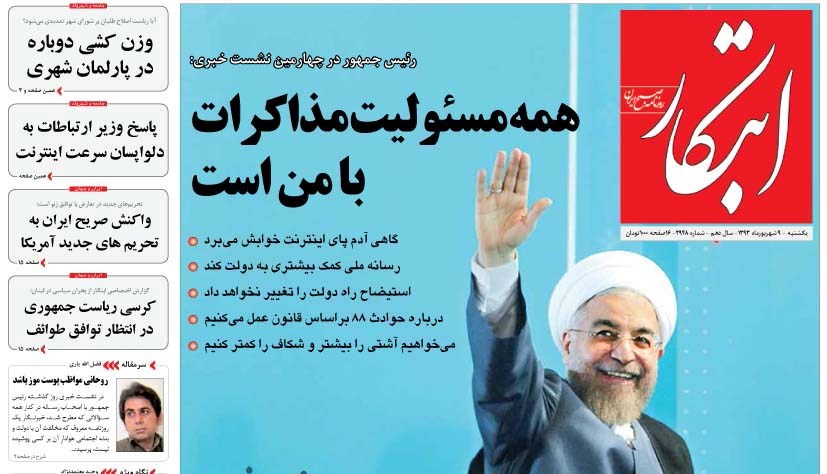 این روزنامه ابتدا به پاسخ روحانی به سوال یک روزنامه درباره فتنه میپردازد و متن کامل پاسخ روحانی را میآورد و سپس مدعی میشود که «این نوع جهت گیری رسانه ای در کنار تحلیل و تفسیرهای جهت دار درباره عملکرد دولت، خبر از یک استراتژی رسانه ای تازه میدهد».