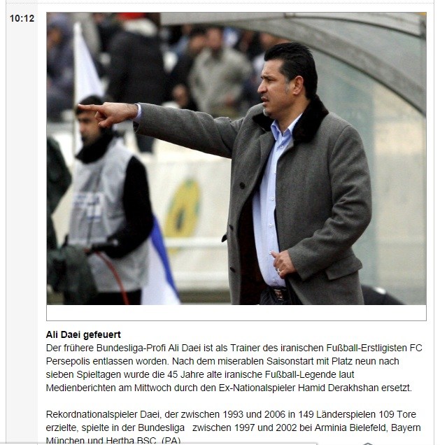 روزنامه دی ولت آلمان به انعکاس خبر اخراج علی دایی پرداخته است.