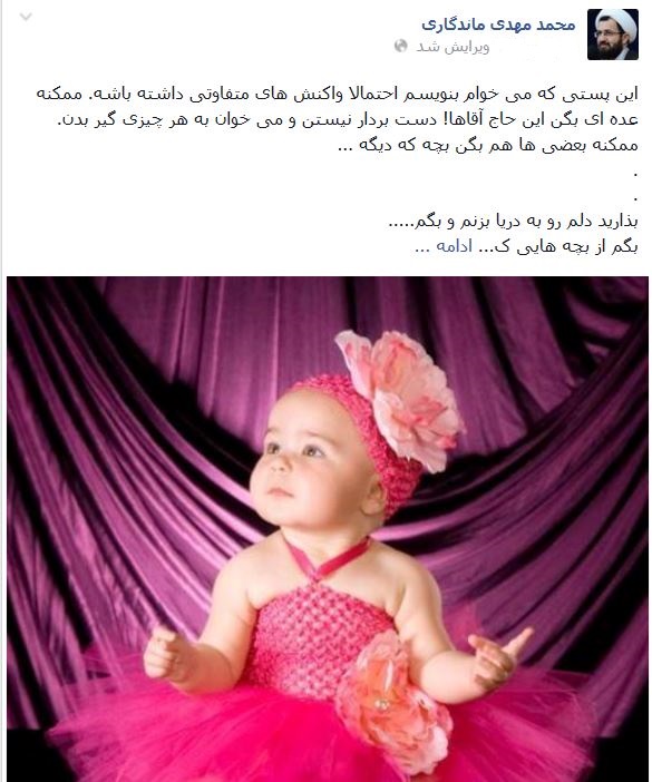متن این نوشتار از حجتالاسلام ماندگاری در فیس بوک به شرح زیر است: