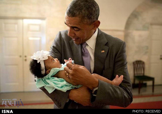 تعجب یک کودک از دیدن اوباما در بغلش!+عکس