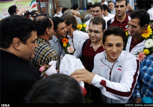 تیم ملی کشتی فرنگی ایران که برای نخستین بار در تاریخ به مقام قهرمانی جهان رسید، با استقبال جمعی از مسئولان و کشتی دوستان وارد تهران شد.