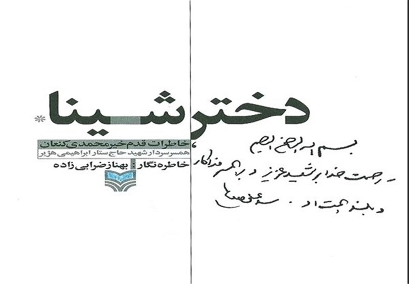 «دختر شینا» نوشته بهناز ضرابیزاده داستان زندگی شادروان قدمخیر محمدی کنعان است که از سوی انتشارات سوره مهر به چاپ رسیده است. این اثر از دوران کودکی راوی یعنی زمانی که او فرزند «حاجآقا» در روستای قایش رزن زندگی میکرد تا زمان شهادت همسرش، شهید حاج ستار را روایت میکند. محمدی در این کتاب هم به لحظات شیرین و هم به دوریهای تلخ همسرش از خانواده اشاره میکند.