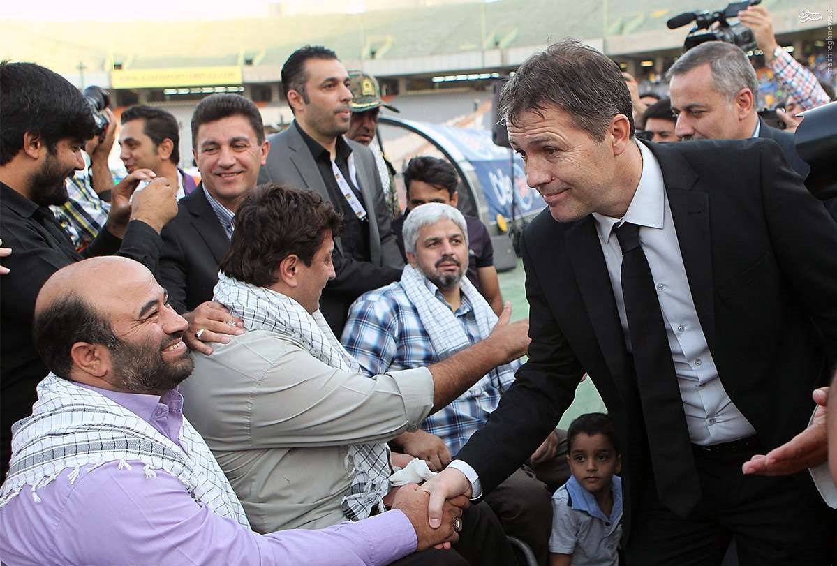 شهدای ایران: اسکوچیچ، سرمربی تیم فوتبال فولاد خوزستان در حال ادای احترام به جانبازان دفاع مقدس در کنار امیر قلعه نویی.(سه هفته پیش)