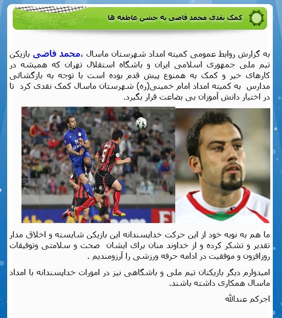 به گزارش شهدای ایران، محمد قاضی مهاجم کم حاشیه تیم فوتبال استقلال مثل بسیاری از فوتبالیست های دیگر دستی هم در انجام کارهای خیر دارد.