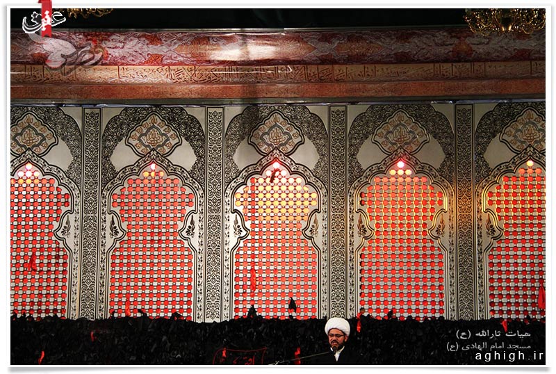 این دکور که حاصل تلاش های شبانه روزی خادمین هیئت ثارلله(ع) است نمایی از ضریح حضرت اباعبدالله (ع) از جنس چوب خراطی شده که اجرای جزئیات ظریف آن یک هفته تا ده روز زمان برده است.