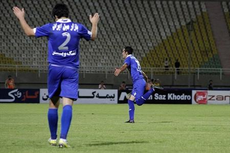 * پس از گل استقلال امیر قلعهنویی به شدت از سوی هواداران تشویق شد.