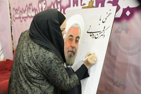 او که روز دوشنبه ۱۹ آبان ماه جاری همراه با گلاره عباسی بازیگر فیلمش از نمایشگاه مطبوعات و خبرگزاری ها در مصلّای تهران بازدید کرد، در غرفه یکی از پایگاههای خبری - تحلیلی حامی دولت یادداشتی خطاب به حجتالاسلام روحانی نوشت که قرار است مستقیماً در اختیار رئیس جمهور قرار گیرد.