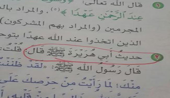 "ابو هریره"در کتاب درسی سعودی‌ها پیامبر شد!+عکس