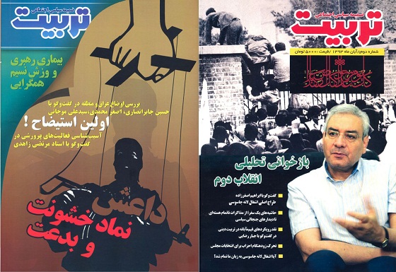 ماهنامه «تربیت» که سال‌هاست به مسائل تربیتی دانش آموزان و مدارس می‌پردازد و تحت نظر معاونت فرهنگی وزارت آموزش و پرورش منتشر می‌شود؛ در تازه‌ترین شماره خود علاوه بر ۵۰ صفحه همیشگی ضمیمه سیاسی ۱۰۰ صفحه ای نیز به همراه داشت!