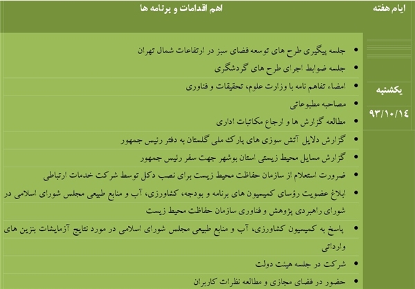 البته اهم برنامه های ابتکار از 16 آذر ماه نیز تا چند روز گذشته به روز نشده بود و تمام برنامههای رئیس سازمان محیط زیست از 16 آذر تا 14 دی در یک روز روی خروجی پورتال سازمان محیط زیست قرار گرفت.