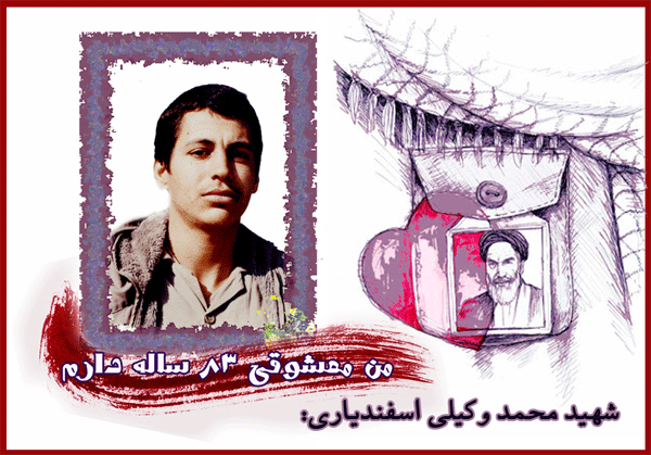 شهید محمد وکیلی اسفندیاری از شهدای گردان غواصی نوح تیپ ۲۱ امام رضا(علیه السلام) خراسان که در عملیات کربلای ۴ در حین غواصی به شهادت رسید و جنازه اش پس از شش ماه از آب سالم گرفته شد