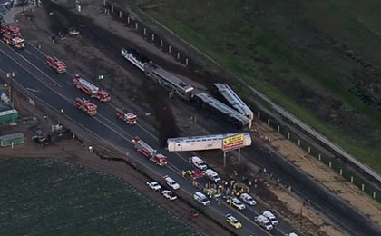 حادثه از خط خارج شدن قطار مسافربری در ایالت کالیفرنیای امریکا تاکنون ده ها زخمی به جای گذاشته است.