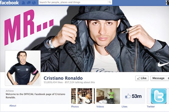 فیسبوک به مردم میگفت «شما اینجا هستید؛ جایی که این توانایی را دارد که ده میلیون نفر شما را دنبال کنند.» اما جواب «لئویس کوریا»، که مدیر حقوق تصویری رونالدو است، این بود که «ما به شما اعتماد نداریم. این بخشی از قوانین پرتغال است.» با این حال در سال 2009 رونالدو فعالیت در فیسبوک را آغاز کرد. یک سال بعد او از همین رسانه متولد شدن فرزندش را اعلام کرد. یک ماه پس از آن رونالدو به اولین ورزشکار دنیاتبدیل شد که در فیسبوک صد میلیون نفر دنبالکننده داشت؛ تنها کاربری که از همسر جرارد پیکه، پیشی گرفت.