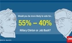 نتایج نظرسنجی شبکه «سی ان ان/او آر سی»، در مورد رقابتهای انتخابات ریاستجمهوری ۲۰۱۶ آمریکا، نشان میدهد «هیلاری کلینتون» از حزب دموکرات با اختلاف ۱۰ درصدی از «جب بوش» جمهوریخواه پیشی گرفته است.