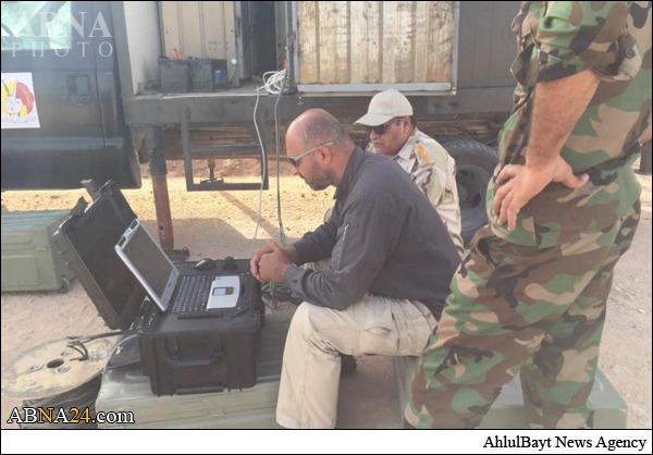برای کنترل مرزهای استان کربلا متخصصان عراقی با دوربین الرقیب به کمک رزمندگان یگان رزمی العباس(ع) آمدند.