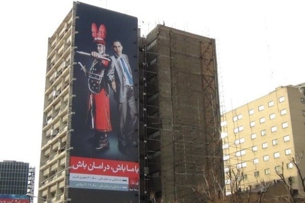 این تابلو چندی پیش توسط خانه طراحان انقلاب اسلامی طراحی شده و به نشانه اعتراض به آمریکا در نزدیکی میدان ولیعصر تهران نصب شده بود. پیش از این در همین راستا تبلیغاتی با عنوان صداقت آمریکایی نیز در اعتراض به مشی آمریکا در مذاکرات هستهای در جای جای تهران نصب شده بود که البته پس از مدتی با اعتراض برخی حامیان دولت، توسط شهرداری جمع آوری شد.