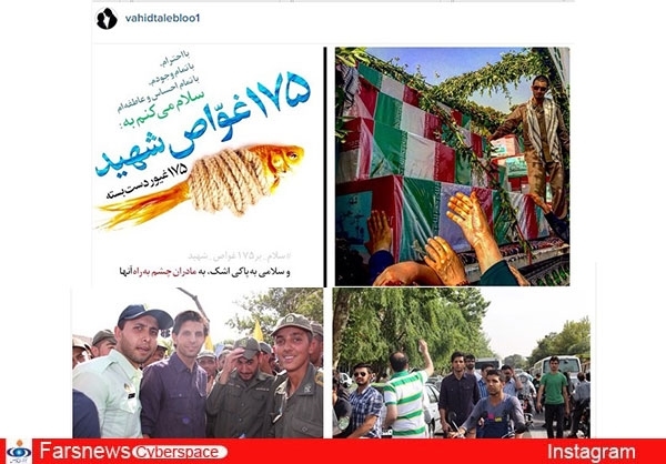 وی با انشار تصویر زیر در صفحه شخصی اینستاگرامش نوشت: «شهیدان قهرمانان واقعى سرزمین من هستند . میدان بهارستان ٩٤/٣/٢٦»