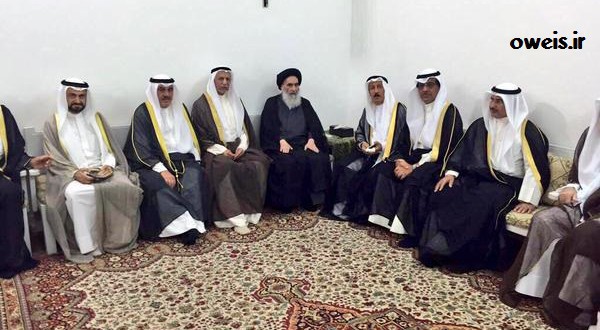 پس از تلاش تروریست های داعشی برای جلوه دادن جنگ قومیتی و مذهبی بین شیعه و اهل سنت در انفجارهای تروریستی اخیر در کویت و عربستان، جمعی از اعضای مجلس ملی کویت به همراه نائب رئیس این مجلس مبارک الخرینج که از تمام طوایف اسلامی (شیعه و سنی) بودند به زیارت حضرت آیت الله العظمی سیستانی در نجف رفتند. تاکید کردند که شیعه و سنی برادرند و نبرد با تروریست های تکفیری نبرد قومی و طائفی نیست.