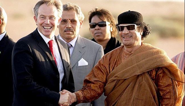 در همین حال گفته می شود تونی بلر نخست وزیر پیشین انگلیس با امضای قراردادی با قذافی که به «توافق صحرا» معروف شده به بهبود روابط بین المللی لیبی کمک کرده است.