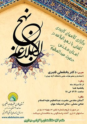 اداره کل آستان مقدس حضرت عبدالعظیم الحسنی(ع) کلاسهای کاربردی آشنائی با نهج البلاغه در آستان مقدس حضرت عبدالعظیم الحسنی(ع) را برگزار می کند.