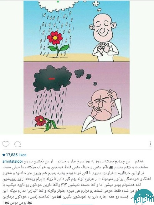 امیر تتلو، خواننده زیر زمینی در صفحه اینستاگرام خود با انتشار شعری که کمی توهین آمیز به نظر می رسد، نوشت: پست رو همه اجازه دارن به خودشون بگیرن!