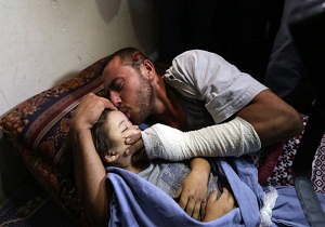 پدر فلسطینی با دختر سه سالهاش که درحمله صهیونیستها به غزه به شهادت رسید، وداع کرد.