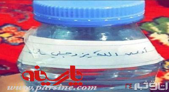 این دختر مقدار زیادی آب معدنی نذر کرده و روی بطری ها نوشته: