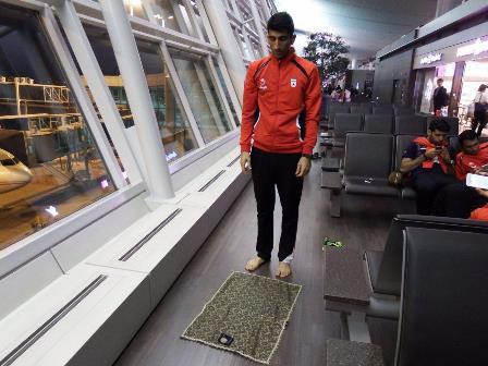 عکس/ نماز دروازه بان تیم ملی در فرودگاه سئول
