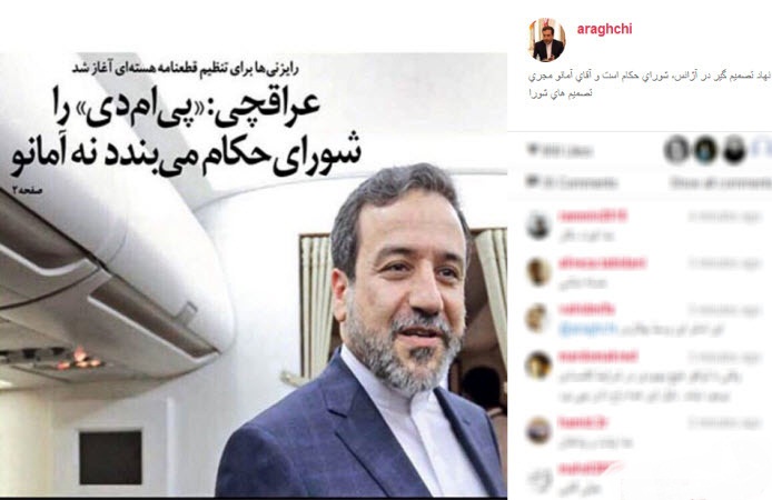 صفحه منتسب به سیدعباس عراقچی با انتشار پستی، آمانو را تنها مجری تصمیم های شورای حکام دانست.